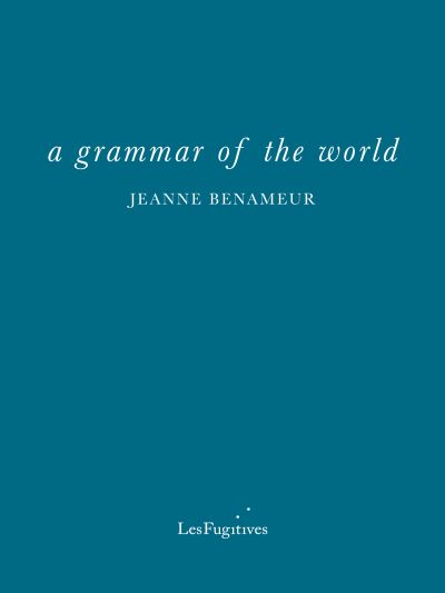 A slim, emotionally and thematically rich book of poetry, a grammar of the world is Jeanne Benameur’s second book published in English by Les Fugitives, offering a more personal look into the author’s own history and writing practice. For Benameur, the Egyptian goddess Isis is a sister who advances with her along the seashore. Like her, poetry responds to life’s call where the blue of the sky mingles with the blue of the sea. She is unity rediscovered. Drawing on subjects as diverse as the author’s childhood traumatic flight from the Algerian War of Independence in the late 1950s, the modern migrant crisis, the transformative power of writing and the long history of the Mediterranean, a grammar of the world is brought into harmony by the central mythological figure, who personifies a careful reknitting of the world and repairing of ancient wounds through the act of writing.